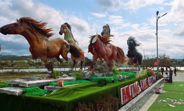 Trước đó, nhằm phục vụ người dân và du khách tham quan, vui xuân đón Tết, xã Lao Bảo đã trưng bày cụm 8 linh vật ngựa với thông điệp "Mã đáo thành công". Các linh vật này được đầu tư từ nguồn xã hội hóa, mỗi con có thiết kế, kích thước và hình dáng khác nhau, cao từ 2 đến 3,5 m.