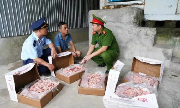 Ngày 21/6, Công an TP Huế cho biết đang phối hợp với các cơ quan chức năng xử lý vụ việc phát hiện và tạm giữ 1 tấn chân gà đông lạnh có nguồn gốc ghi sản xuất từ Paraguay nhưng không kèm theo hóa đơn, chứng từ theo quy định.