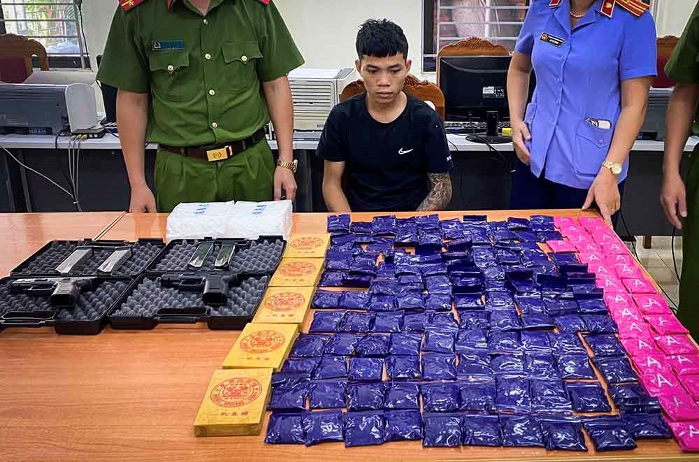 Công an thu giữ lượng lớn tang vật là 05 bánh heroin có trọng lượng 1.521,46 gam, 30.681 viên ma túy tổng hợp có trọng lượng 2.761,27 gam, 02 kg ma tuý đá, 02 khẩu súng ngắn quân dụng và 35 viên đạn.