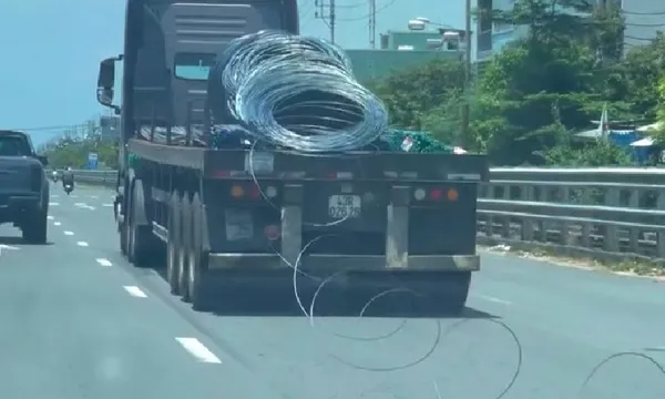 Khi đến Km 927+800 (quận Thanh Khê), cuộn thép trên xe bị xổ dây buộc, thép đổ xuống đường khi xe đang di chuyển, gây nguy hiểm cho các phương tiện đi sau.