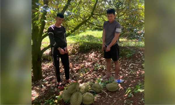Trong quá trình thực hiện nhiệm vụ, tổ công tác đã bắt quả tang 2 đối tượng gồm L.T.Đ (sinh năm 1990, thường trú khu phố Ruộng Hời, xã Bảo Vinh, tỉnh Đồng Nai) và M.H.H (sinh năm 2003, thường trú khu phố Núi Đỏ, phường Xuân Lập, tỉnh Đồng Nai) đang có hành vi cắt trộm khoảng 3 tạ sầu riêng, trị giá khoảng 15 triệu đồng - tại khu vực gần vườn sầu riêng của anh Đào Trọng Nghĩa (sinh năm 1994), thuộc ấp Tân Bình, xã Cẩm Mỹ, tỉnh Đồng Nai.