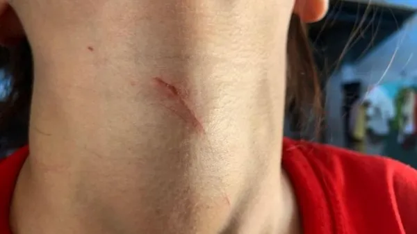 Cô gái bị một vết cứa ở cổ sau vụ cướp - Ảnh: Zing