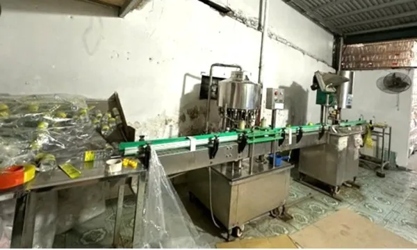 Khám xét tại chỗ, lực lượng chức năng lập biên bản thu giữ 12.000 chai dấm loại 450ml chuẩn bị đưa ra thị trường; khoảng 1,5 tấn axit axetic tinh khiết không rõ xuất xứ, không bảo đảm chất lượng; cùng hơn 50.000 vỏ chai, nắp, tem nhãn, vỏ thùng phục vụ đóng gói. Toàn bộ dây chuyền và máy móc sản xuất dấm giả cũng bị tạm giữ.