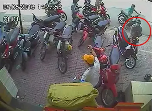 Một vụ trộm xe táo tợn giữa nơi đông người - Ảnh chụp qua camera an ninh.