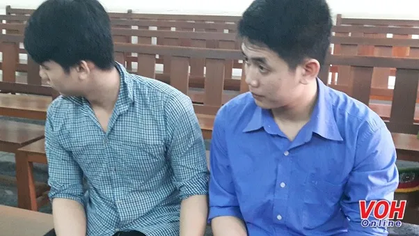 Bị cáo Nguyên (phải) và bị cáo Bảo tại phiên xử sơ thẩm