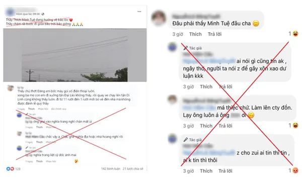Đáng chú ý, mặc dù một số tài khoản khác đã bình luận, nhắc nhở chủ tài khoản “H.H.C” đăng tải thông tin là sai sự thật tuy nhiên tài khoản “H.H.C” vẫn tiếp tục xác nhận bản thân đã biết không phải Thích Minh Tuệ nhưng vẫn đăng tải để “mọi người trầm trồ, gây xôn xao dư luận”.