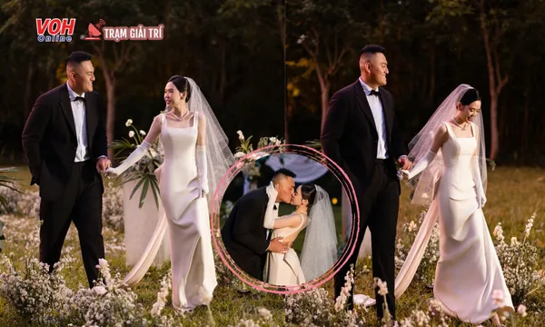 Dưới ánh hoàng hôn lãng mạn, Fabo Nguyễn hồi hộp đợi Vân Tiny trong chiếc áo cưới tinh khôi bước đến. Khoảnh khắc nhìn thấy nhau, cả hai không kìm được giọt nước mắt xúc động.