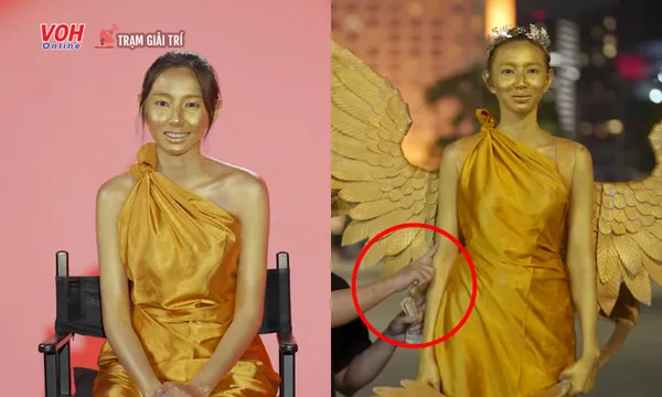 Vừa hào hứng, vừa hồi hộp, Thùy Tiên và Double2T bắt tay vào chuẩn bị dưới sự hướng dẫn của hai “giáo viên”. Hai nghệ sĩ khá thích thú khi được bôi lớp sơn vàng lên hết người, chọn dáng đứng và chính thức được đứng giữa phố đi bộ “tác nghiệp”. Rất nhanh, lượng người xem đã tập trung đông đúc trước các nhân tượng.