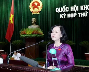 | Chủ nhiệm Ủy ban Các vấn đề xã hội của Quốc hội Trương Thị Mai, khẳng định: “hầu hết luật đều chậm đi vào cuộc sống vì dù được thông qua và đã ban hành rồi, nhưng vẫn phải chờ văn bản hướng dẫn” (ảnh: ĐCSVN) |