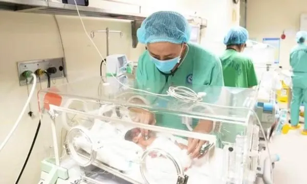 Bé sơ sinh được theo dõi sát sao tại Trung tâm Sơ sinh, Bệnh viện Phụ sản Trung ương - Ảnh: ND