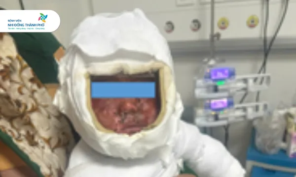 Bệnh viện Nhi Đồng Thành Phố vừa tiếp nhận và điều trị cho bé N.T.G.H. (9 tháng tuổi, ngụ xã Nhơn Ninh, Tây Ninh) trong tình trạng bỏng nặng do nước sôi.