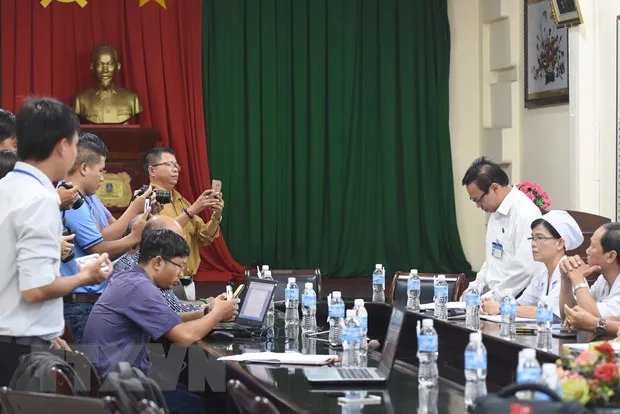 Bệnh viện Nhi Đồng Đồng Nai thông tin với người nhà về nguyên nhân tử vong của bệnh nhi. (Ảnh: TTXVN)