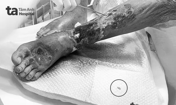 Một tháng sau khi đi rừng, hai cẳng chân của người đàn ông 57 tuổi (tại TPHCM) bắt đầu rỉ dịch mủ, bốc mùi hôi và xuất hiện mảng hoại tử, đặc biệt là có giòi làm tổ bên trong.