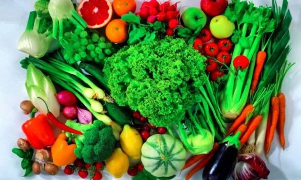 Rau xanh và hoa quả tươi