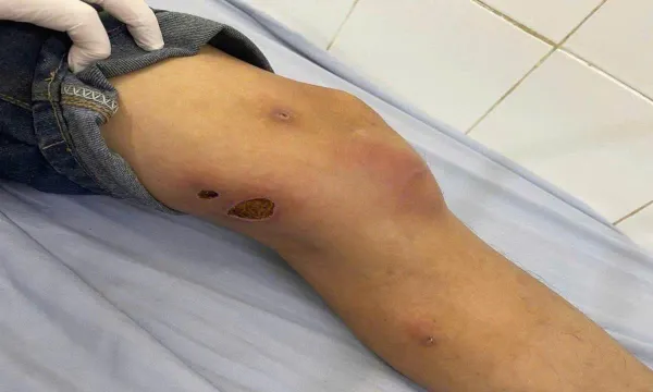 Những hình ảnh từ Trung tâm Y tế huyện Tân Sơn ghi nhận nhiều bệnh nhân có vùng da đỏ rát, sưng tấy, lòi giun từ vết thương, tạo cảm giác đau nhức dữ dội kéo dài nhiều tuần.