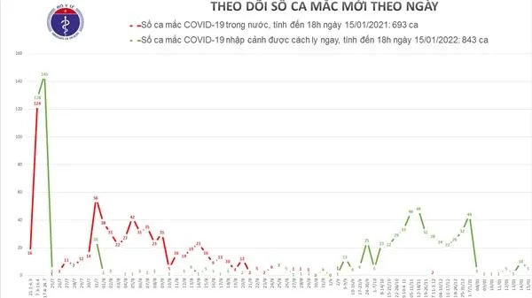 Trong số 5 ca mắc mới COVID-19 được ghi nhận chiều tối 15/1, 2 ca được cách ly tại TP.Hồ Chí Minh, 3 ca còn lại được cách ly tại Đà Nẵng.
