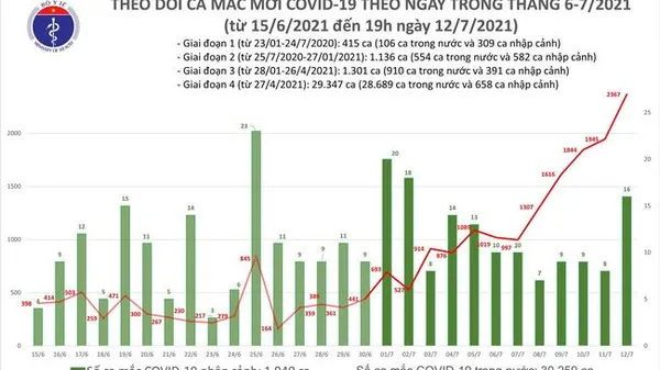 - Trong ngày 12/7, Việt Nam ghi nhận 2.383 ca mắc mới: