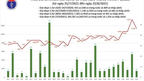 Tổng số 11.214 ca nhiễm mới được tính từ 18h ngày 21/8 đến 18h ngày 22/8,