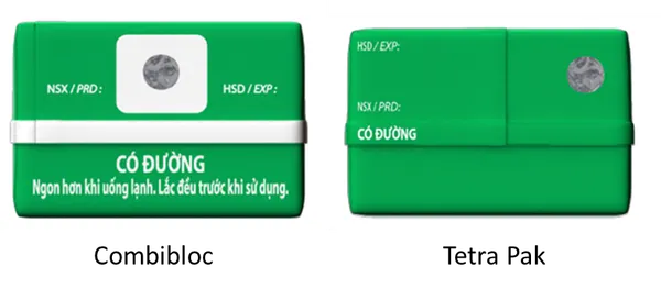 1. Hộp Tetra Pak cao và thon thả, hộp Combibloc thấp hơn và có bề ngang rộng hơn
