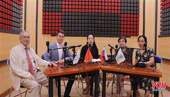 Giáo sư Varfolemeeva Svetlana (thứ 2 từ bên phải) trả lời phỏng vấn VOH.