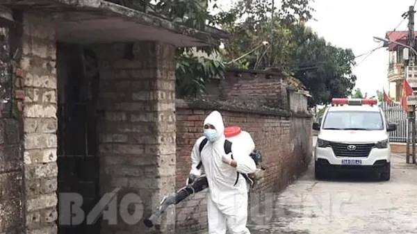 Phun khử khuẩn tại khu vực sinh sống của các ca dương tính mới : Ảnh Báo Hải Dương