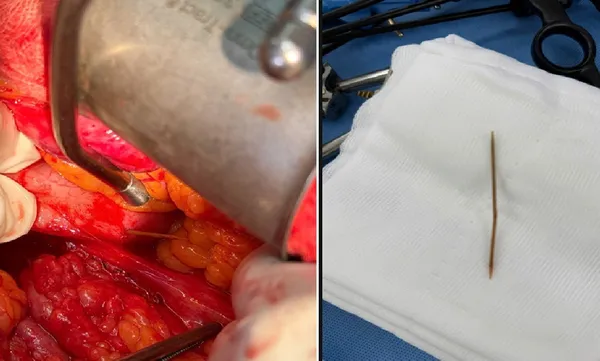 Chụp CT xác định có một cây tăm (kích thước 6cm) trong bụng bệnh nhân. Các bác sĩ đã hội chẩn và quyết định phẫu thuật lấy dị vật. Sau khi phẫu thuật 6 ngày, bệnh nhân hoàn toàn khỏe mạnh, sinh hoạt bình thường.