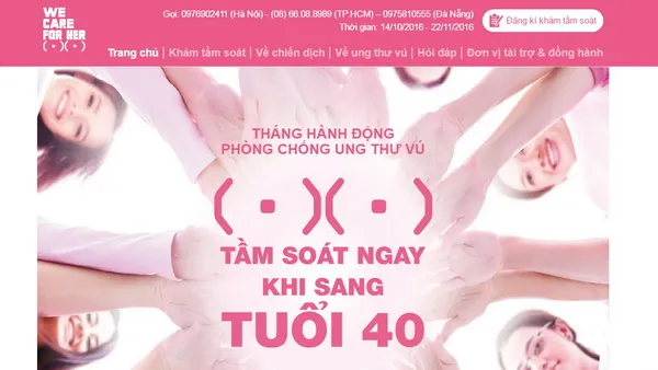Để đăng ký tầm soát miễn phí, các chị em phụ nữ từ 40 tuổi trở lên có thể đăng ký tại website của chương trình: www.tamsoatungthuvu.vn hoặc gọi điện thoại đến đường dây nóng của chương trình từ 08:00 đến 17:00 từ thứ 2 - đến thứ 6 qua số điện thoại 0888.966.466 hoặc 0888.96.96.95.