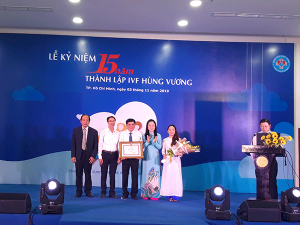 Phó Giáo sư Tăng Chí Thượng – Phó Giám đốc Sở Y tế TPHCM trao bằng khen cho tập thể khoa Hiếm muộn – Bệnh viện Hùng Vương