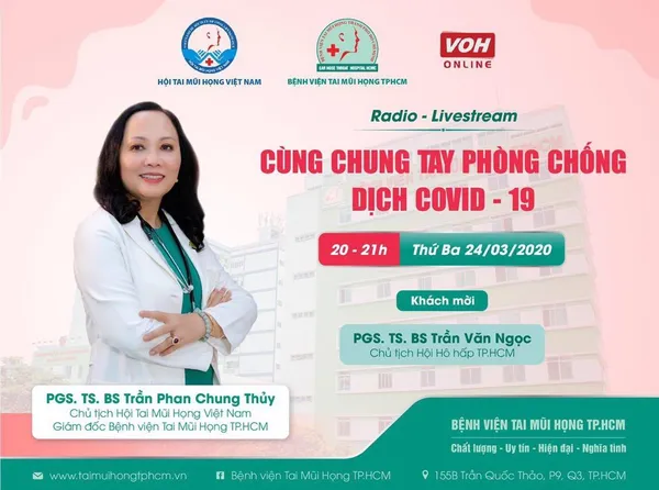 Chương trình livestream đồng thời trên các fanpage: Radio VOH và fanpage Bệnh viện Tai Mũi Họng TP, Hội Tai Mũi Họng VN. Khán giả tương tác trực tiếp với chương trình livestream bằng cách đặt câu hỏi comment trên các fanpage này nhé.