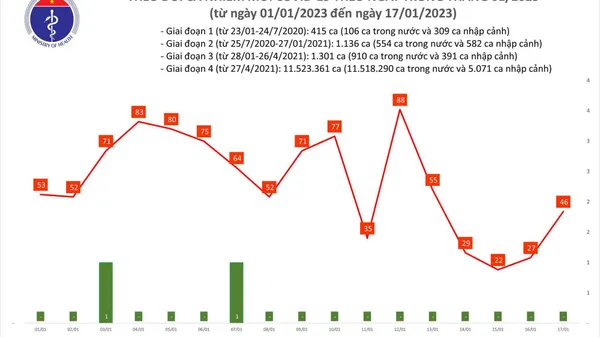 Trong ngày 16/1 có 43.288 liều vắc xin phòng Covid-19 được tiêm. Như vậy, tổng số liều vắc xin đã được tiêm là 265.950.150 liều.