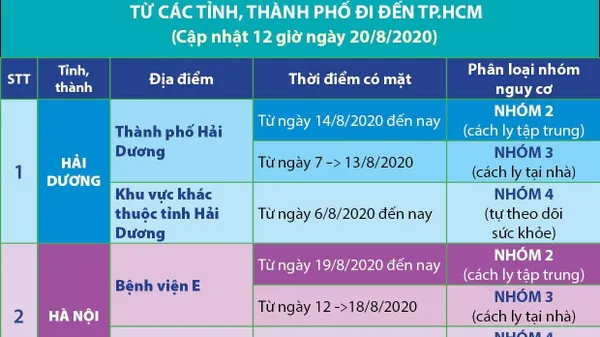 Thời gian áp dụng các hình thức giám sát này là 14 ngày, tính từ ngày đến TPHCM. Các tỉnh, thành thực hiện giám sát sẽ được cập nhật tùy theo diễn biến tình hình dịch.