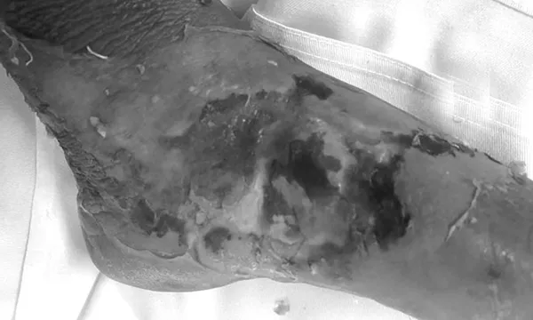 Các bác sĩ đã tiến hành xử trí vết thương: cắt lọc tổ chức hoại tử và điều trị kháng sinh tích cực để kiểm soát nhiễm trùng.