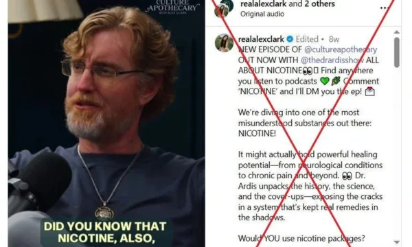 Ngày 19/7, các chuyên gia kiểm chứng của hãng tin AFP lên tiếng bác bỏ loạt tuyên bố nói trên. Theo họ, nicotine là một chất gây nghiện đã được Tổ chức Y tế Thế giới và Cơ quan Quản lý thực phẩm và dược phẩm Mỹ (FDA) xác định rõ ràng.