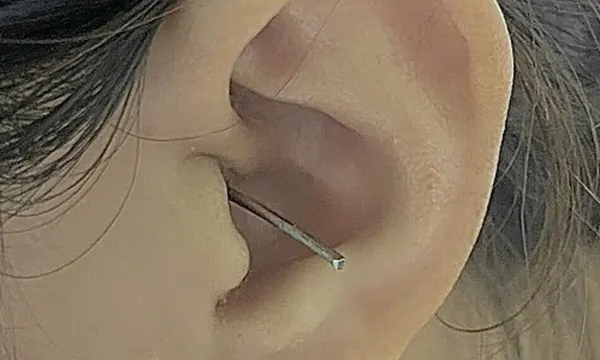 Bệnh viện Tai Mũi Họng TPHCM vừa tiếp nhận một trường hợp cấp cứu do tai nạn khi lấy ráy tai. Nạn nhân là một phụ nữ 25 tuổi đến từ Đạ Hoai, Lâm Đồng. Trong lúc nằm vệ sinh tai trái, chồng cô bất ngờ ôm lấy, khiến dụng cụ ráy tai bằng kim loại đâm sâu vào ống tai, gây thủng màng nhĩ.