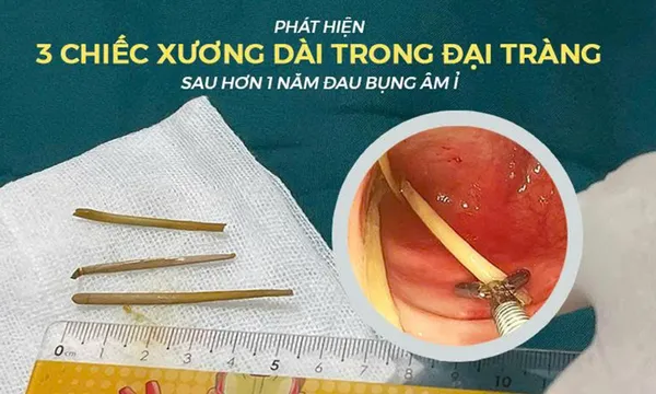 Đáng chú ý, trong quá trình nội soi, ê-kíp phát hiện ba chiếc xương dài, nghi là xương cá hoặc xương gia cầm, cắm sâu vào thành đại tràng gây viêm kéo dài.