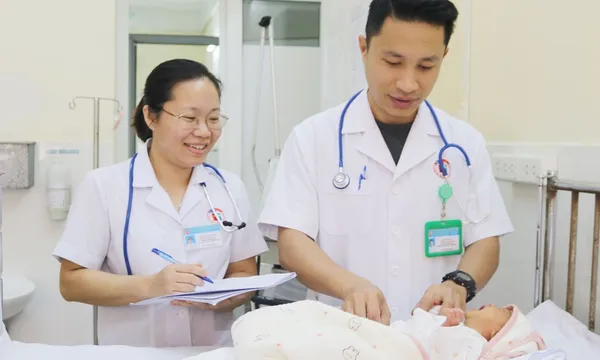 Bác sĩ kiểm tra sức khỏe cho bé sơ sinh