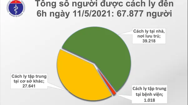 Số người cách ly: Tổng số người tiếp xúc gần và nhập cảnh từ vùng dịch đang được theo dõi sức khỏe (cách ly): 67.877, trong đó: