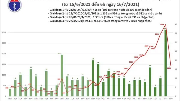Tính từ 19h30 ngày 15/7 đến 6h ngày 16/7 có 1.438 ca mắc mới (BN40851-42288):