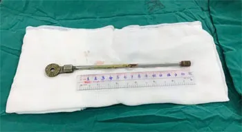Thanh sắt sau khi được lấy ra khỏi mắt bệnh nhi.