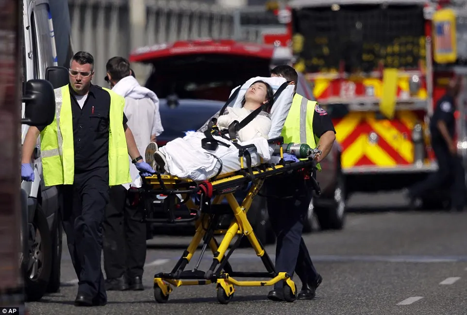 Một sinh viên được đưa đi cấp cứu (Ảnh: AP)