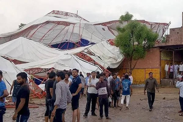 Theo giới chức Ấn Độ, chiếc lều này đã bị sập vì mưa to và gió lớn trong một trận bão cát tại huyện Barmer, cách thủ phủ Jaipur của bang Rajasthan 452 km về phía Tây.