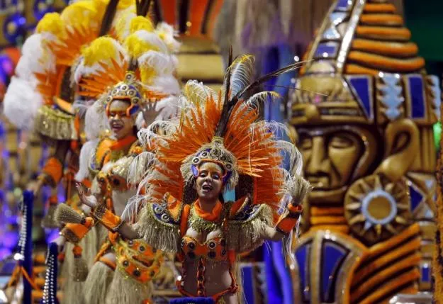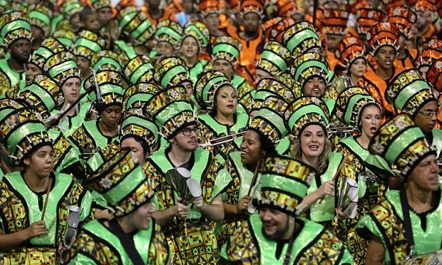Thành viên của trường Samba Mocidade Alegre trong một cuộc diễu hành ở São Paulo. (Ảnh: EPA)