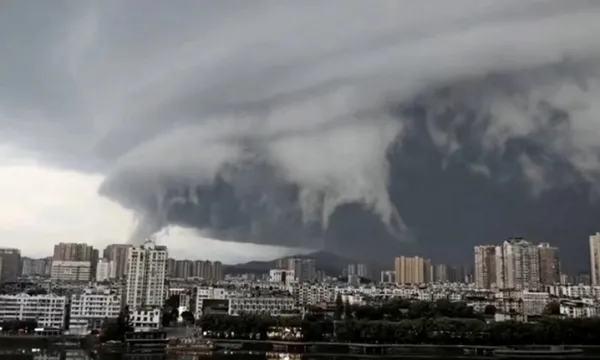 Mây đen xuất hiện tại tỉnh Quảng Đông khi bão Wipha đổ bộ - Ảnh: REUTERS