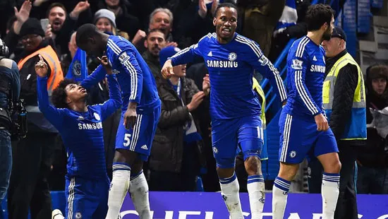 Trên sân nhà Stamford Bridge, tiền vệ Willian ghi bàn thắng muộn ở phút 89 giúp Chelsea thắng khít khao Everton 1-0 qua đó duy trì cách biệt 7 điểm so với đội xếp nhì Manchester City, nhà đương kim vô địch đại thắng Stoke City 4-1 ở sân khách. Tiền đạo Sergio Aguero tỏa sáng khi ghi được cú đúp; hai bàn còn lại do công của James Milner và Samir Nasri. Bàn danh dự của đội chủ nhà được ghi do công của tiền đạo Peter Crouch.