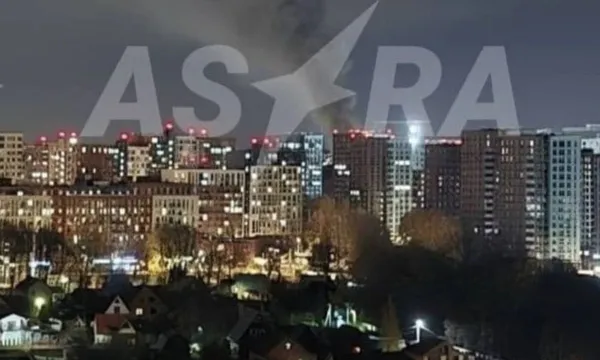 Khói bốc lên trên các tòa nhà gần Matxcơva (Nga) trong cuộc tấn công bằng drone được ghi nhân vào đêm 26 và rạng sáng 27/10 - Ảnh: ASTRA