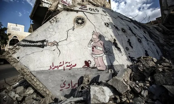 Bức tranh Graffiti nhắc nhớ vụ tấn công hóa học tại thủ đô Damacus. (Ảnh: EPA)