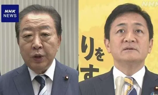 Lãnh đạo đảng Dân chủ Lập hiến đối lập lớn nhất - ông Yoshihiko Noda (bên trái), kêu gọi thống nhất để đề cử ông Yuichiro Tamaki (bên phải) là ứng cử viên duy nhất của các đảng đối lập - Ảnh: NHK