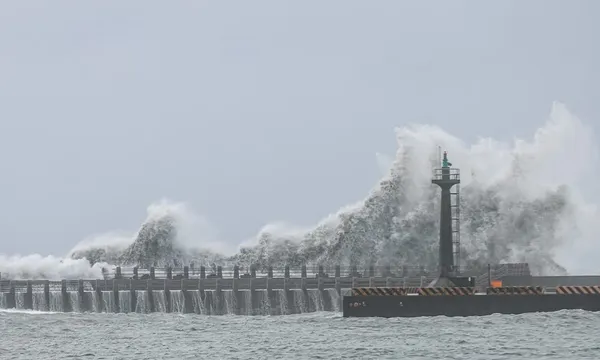 Sóng vỗ trên bờ biển ở Yilan khi Bão Gaemi đang tiến gần - Ảnh: Getty Images