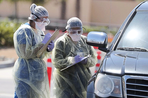 Nhân viên y tế kiểm tra sức khỏe của người dân tại TP Indian Wells - Mỹ. Ảnh: Reuters