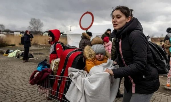 Người tị nạn từ Ukraine tại khu vực biên giới Medyka, Ba Lan - Ảnh: AFP